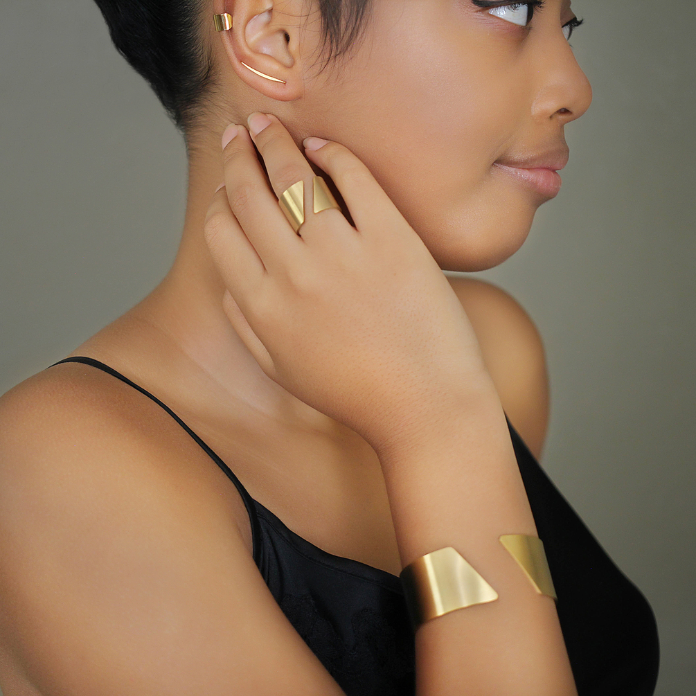 Our edgy MJ bracelet in a smooth matte finish metal. The Kendall Bracelet in gold is adjustable, making it an effortless accessory whether you wear it day or night.
